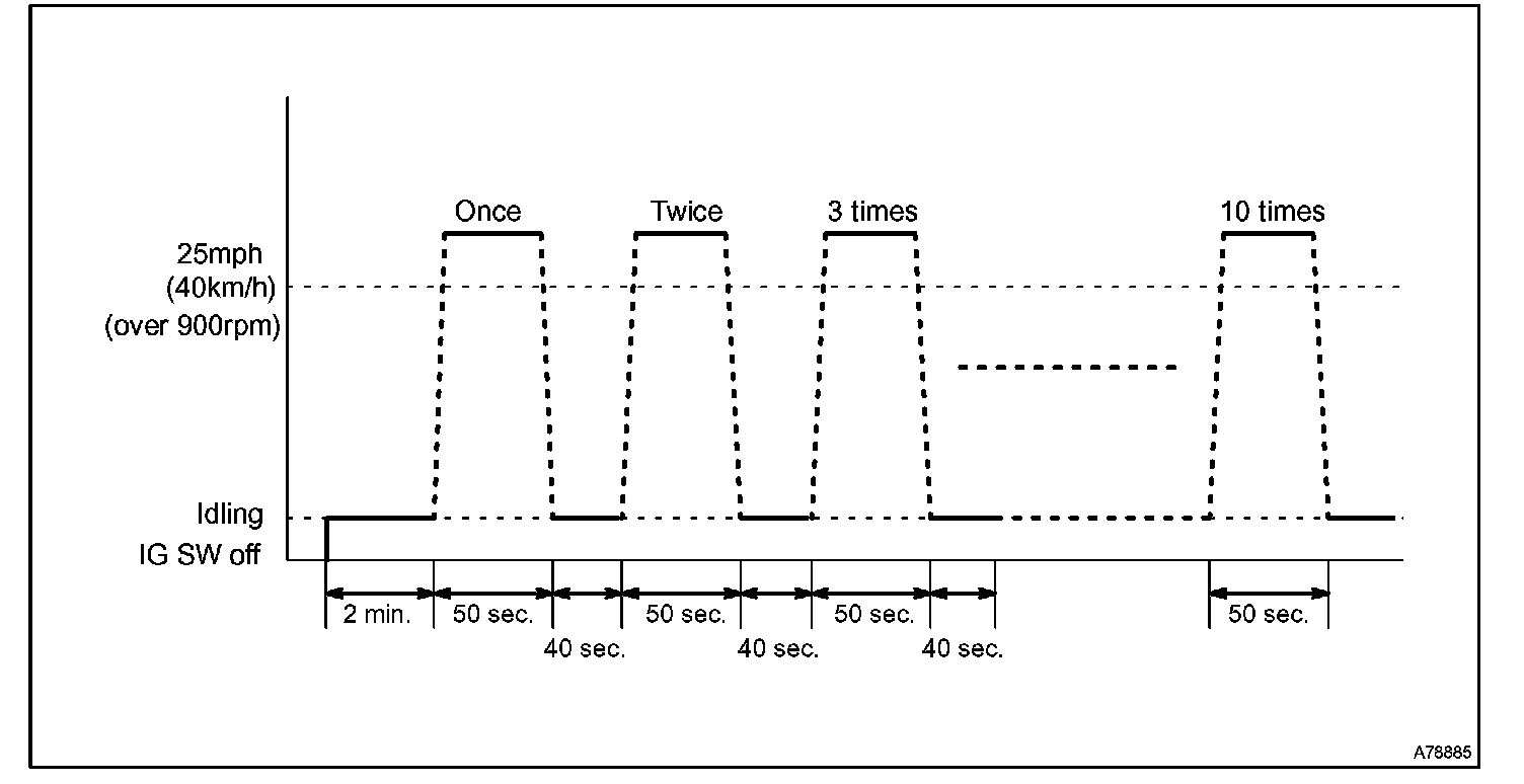 2. Drive vehicle at 40 to 55 mph (64 to 88 km/h) for approximately 3 minutes.