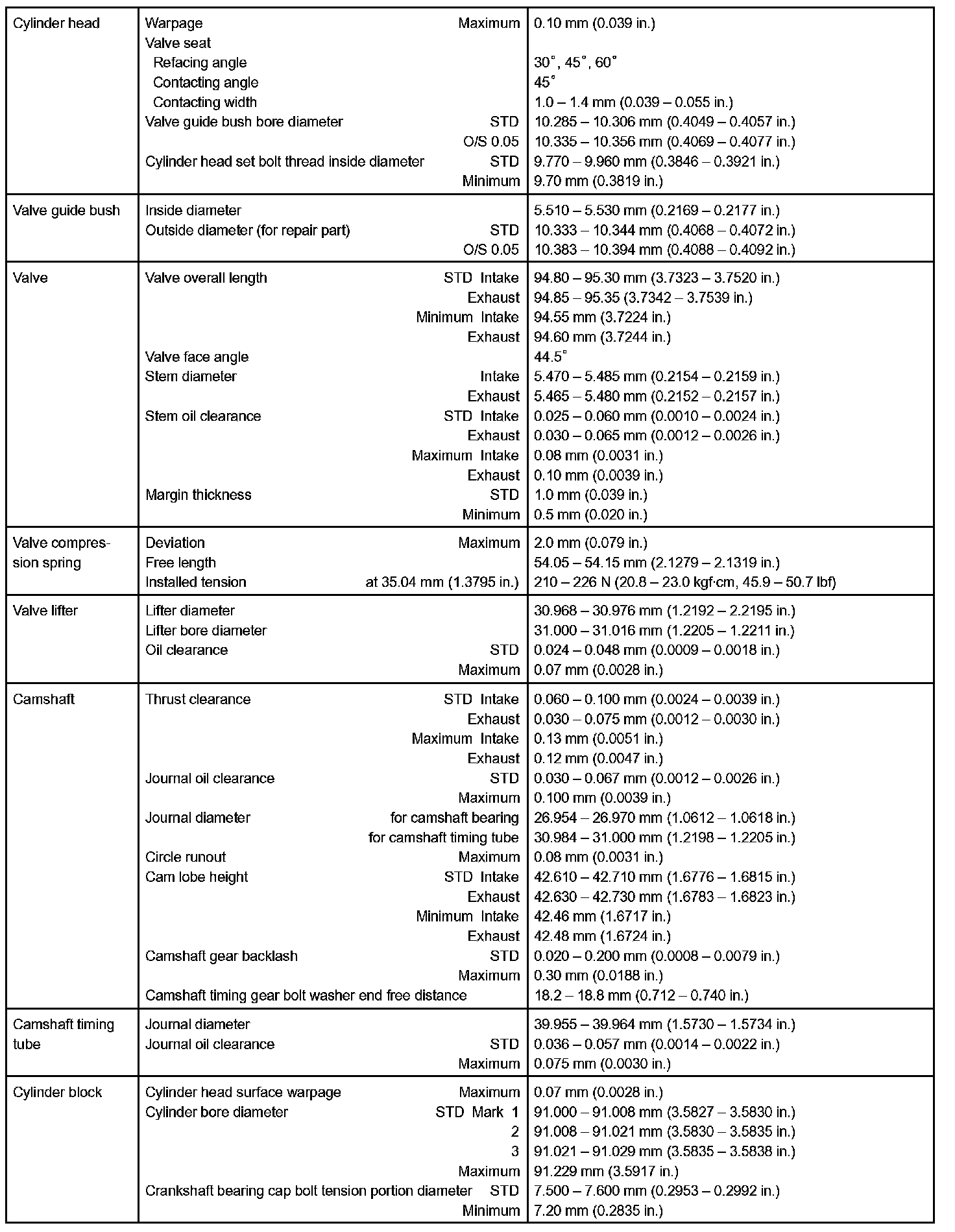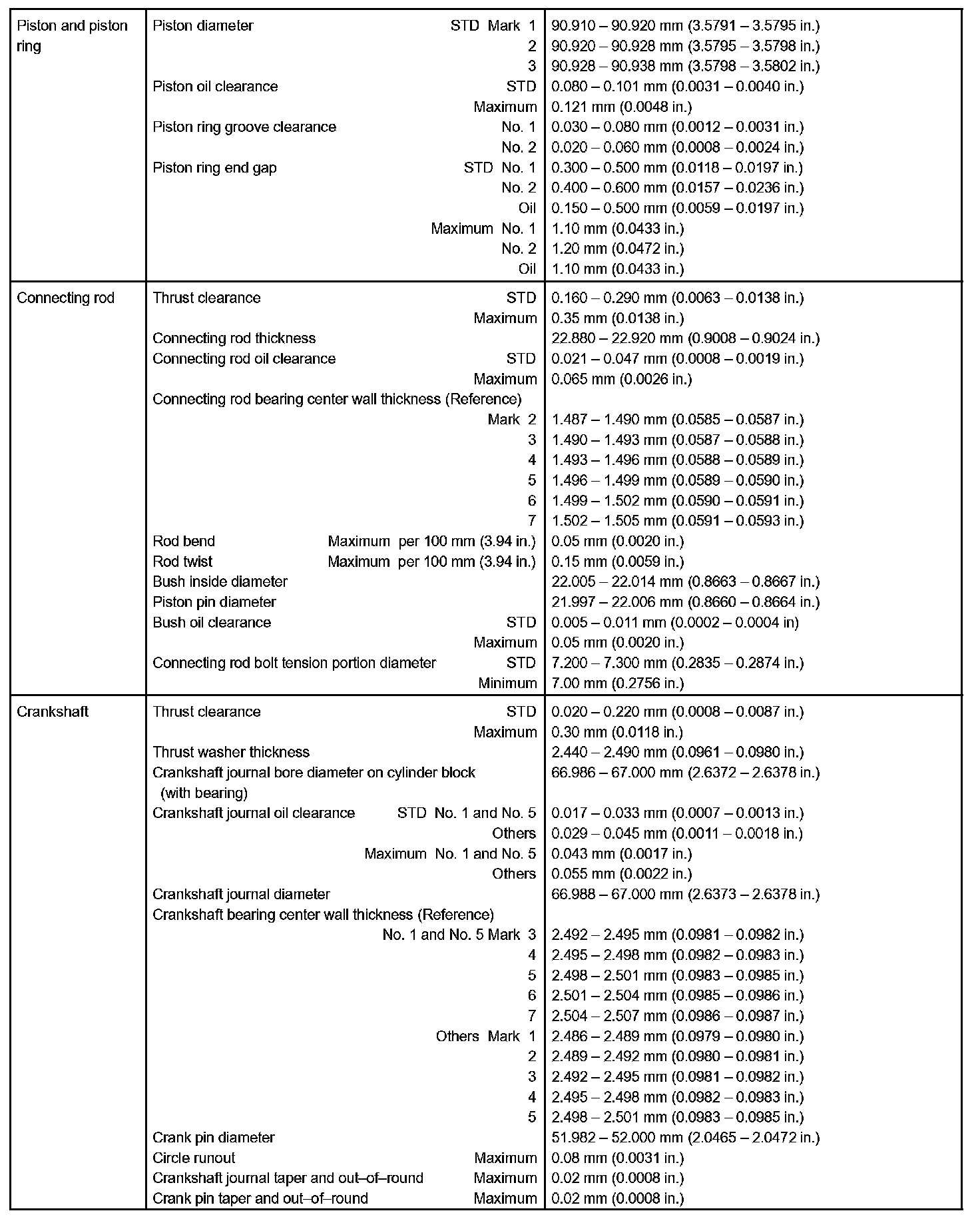 Engine Mechanical - Service Data Part 2:
