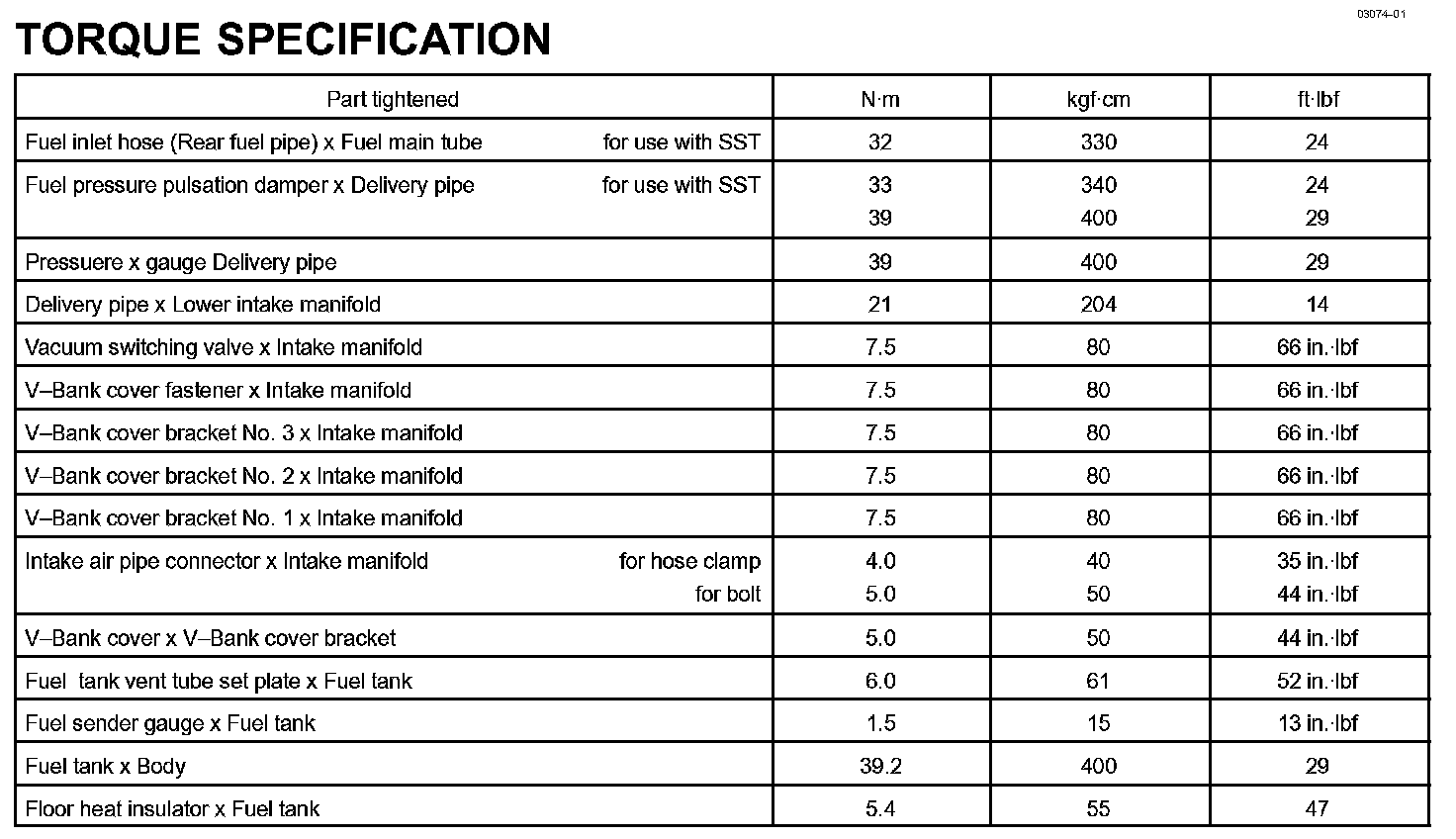 Fuel - Torque Specification:
