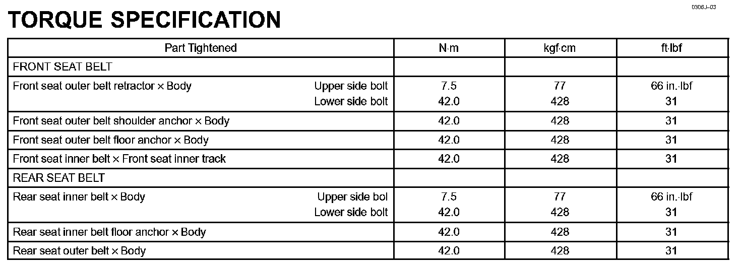 Seat Belt - Torque Specification: