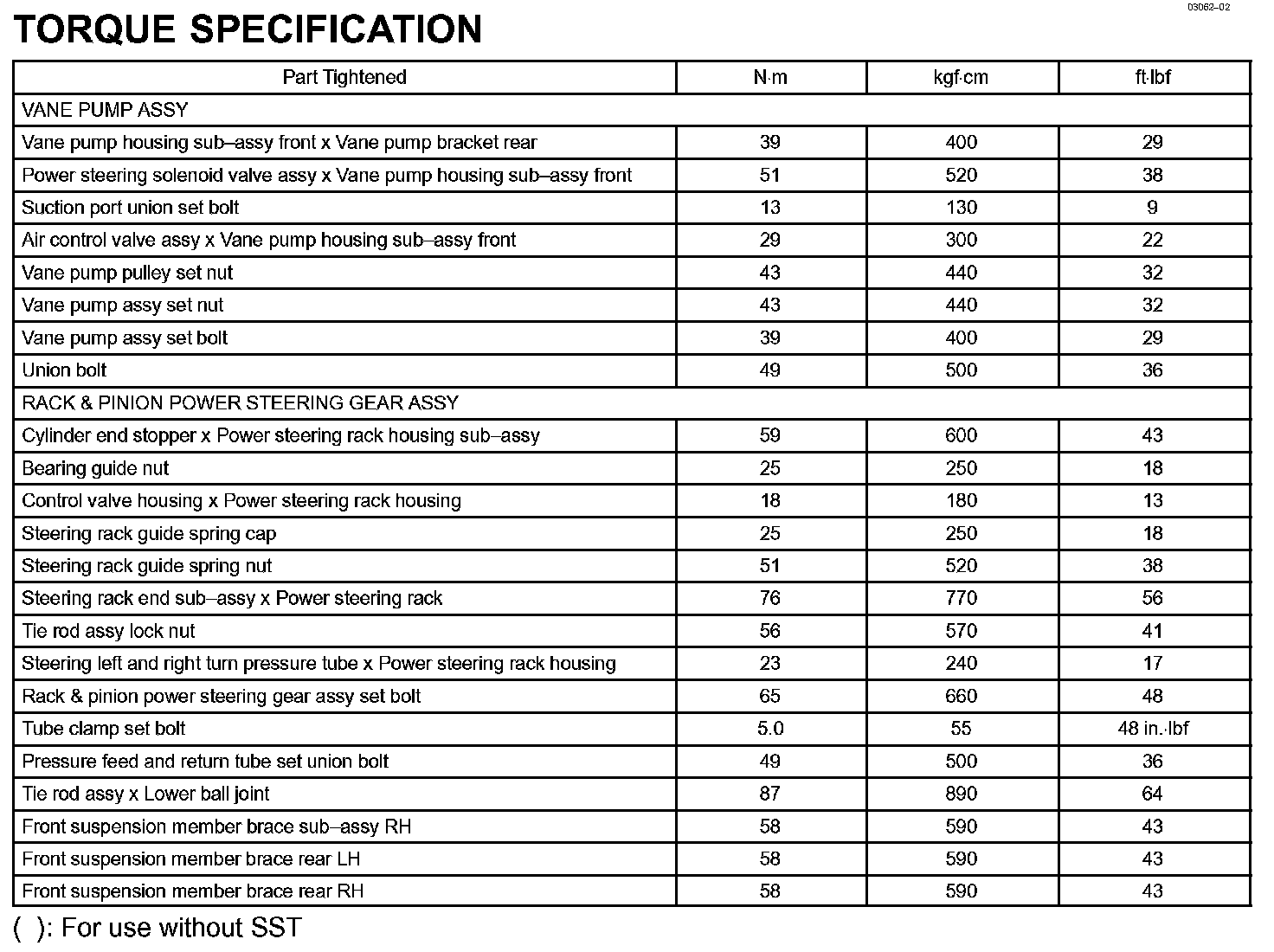Power Steering - Torque Specification:
