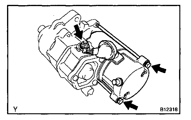 c. Remove the 2 bolts and pull out the starter yoke together with the armature from the magnetic switch.