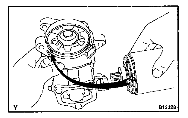 b. Align the protrusion of the starter yoke with the groove of the magnetic switch, and install the starter yoke and armature assembly.