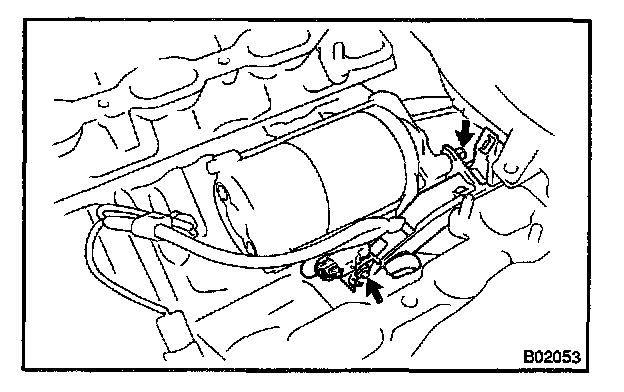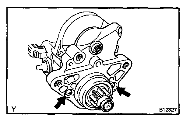 d. Remove the 2 bolts and starter.