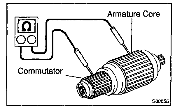1. Using an ohmmeter, check that there is no continuity between the commutator and armature core.