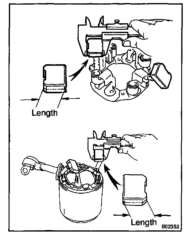 If the length is less than the minimum, replace the brush holder and starter yoke.