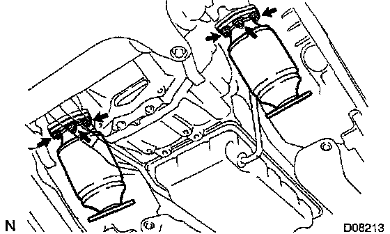 a. Install 2 new gaskets, 2 w/catalyst converter assy and 6 new nuts.