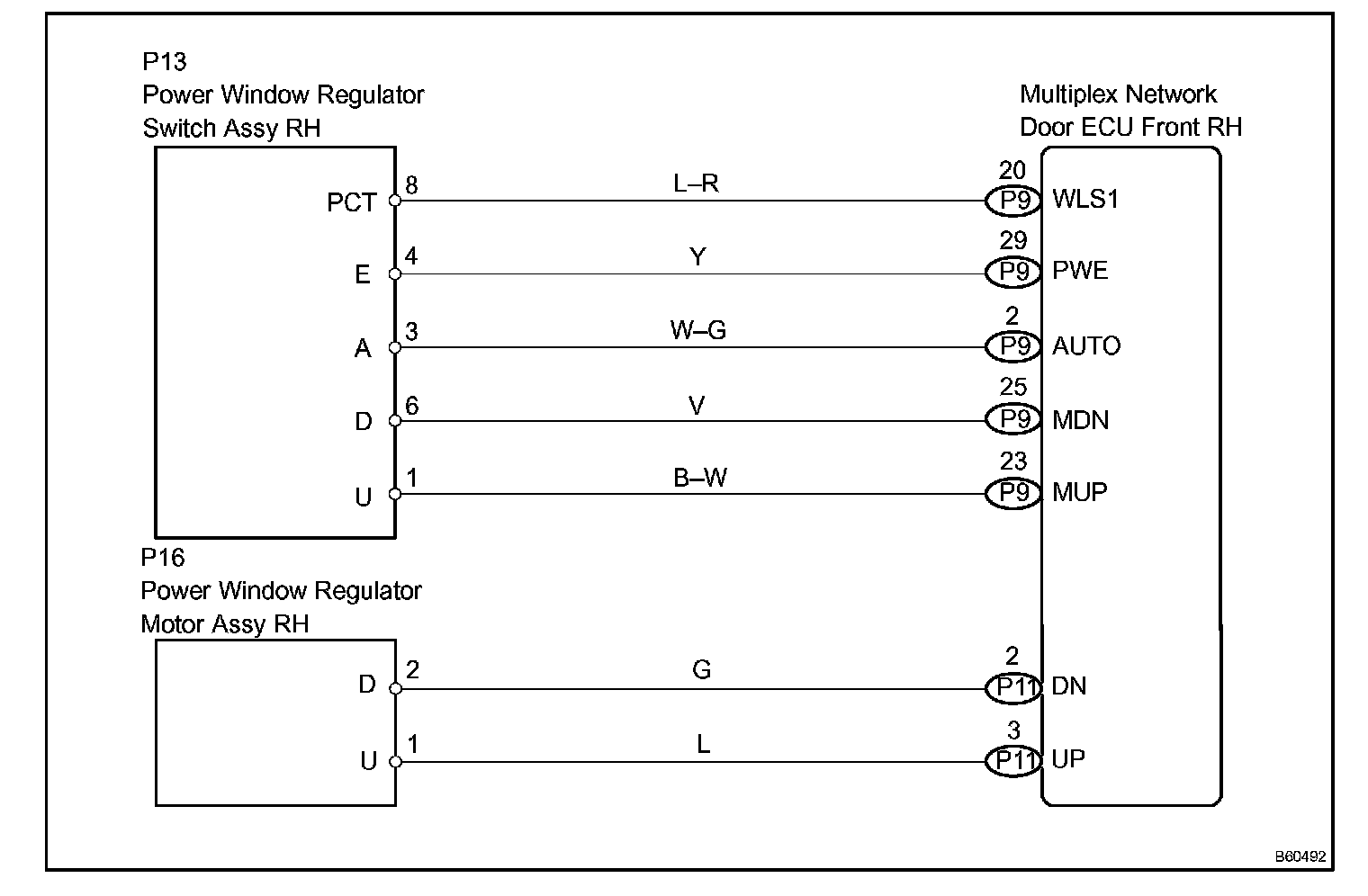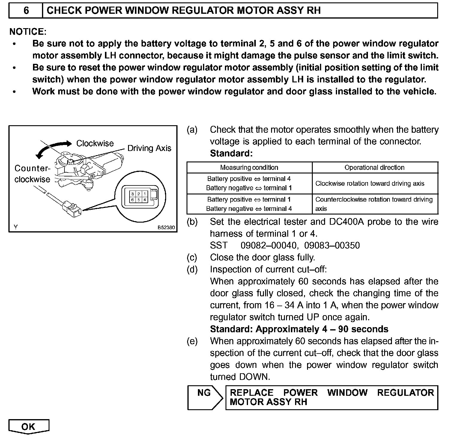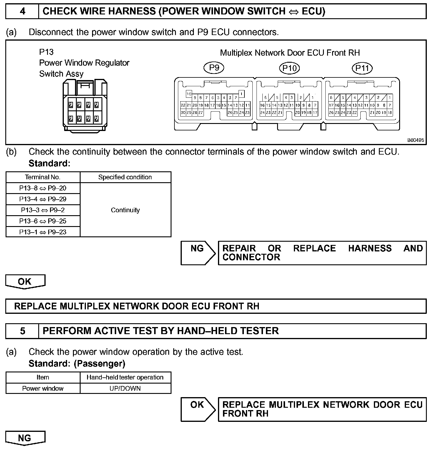 NOTE: The power window system has a function with large-scale body multiplex communications. First of all, inspect the communication function depending on the "how to proceed with troubleshooting", and check there is no abnormality in the communication system. Then, finally proceed with the troubleshooting. Also, if the power window system has a malfunction in the jam protection function, the AUTO operations are prohibited. Because of this, confirm that the diagnosis code is normal before the troubleshooting.