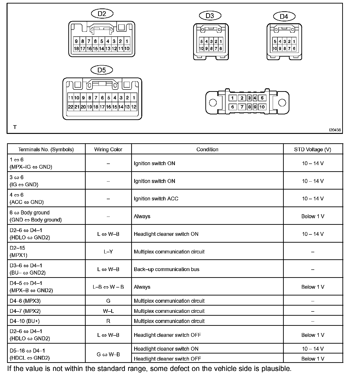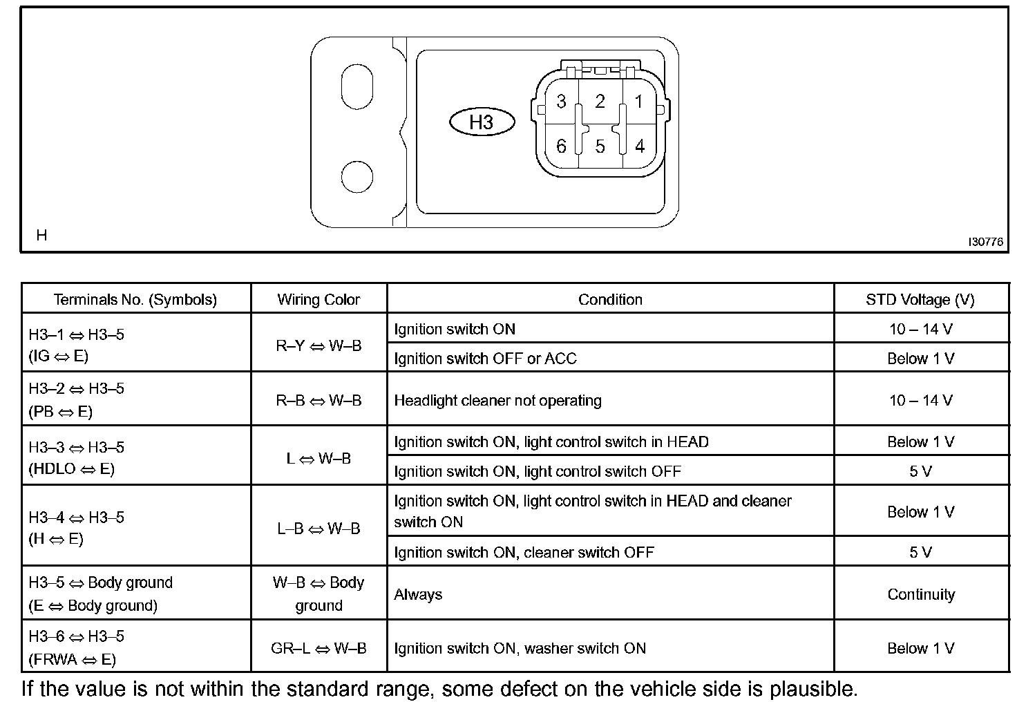 Terminals Of ECU/Pinouts - Headlight Cleaner Control Relay: