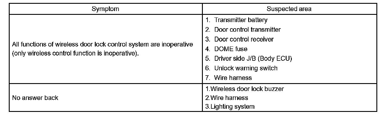 Problem Symptoms Table: