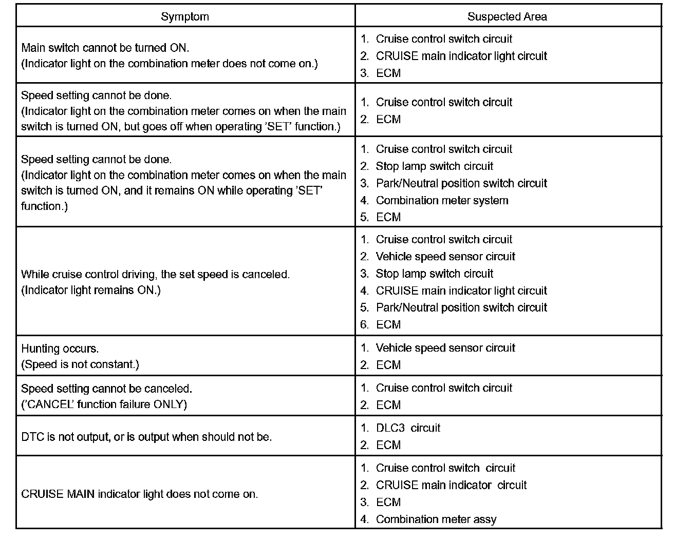 Problem Symptoms Table: