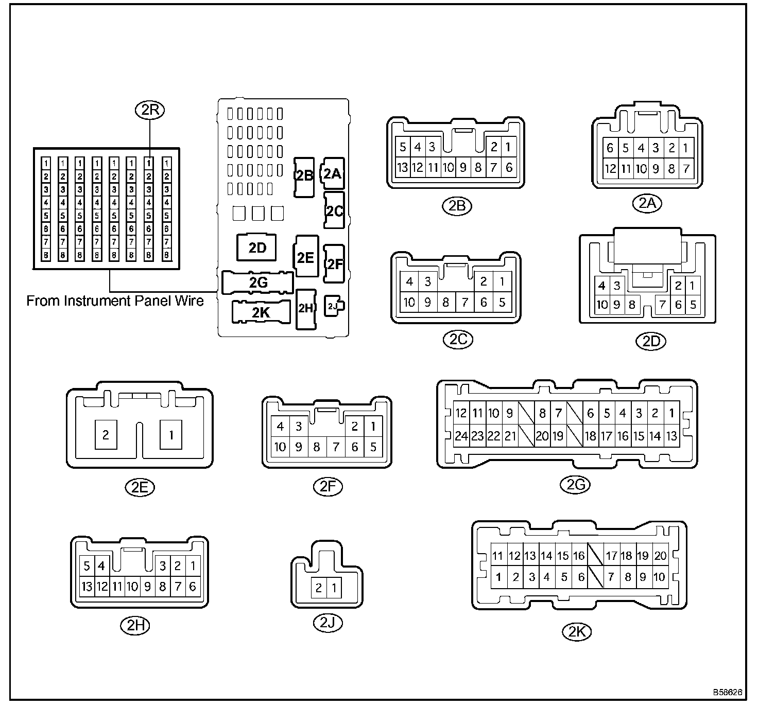 a. Disconnect the 2B, 2E, 2F, and 2G J/B connectors.