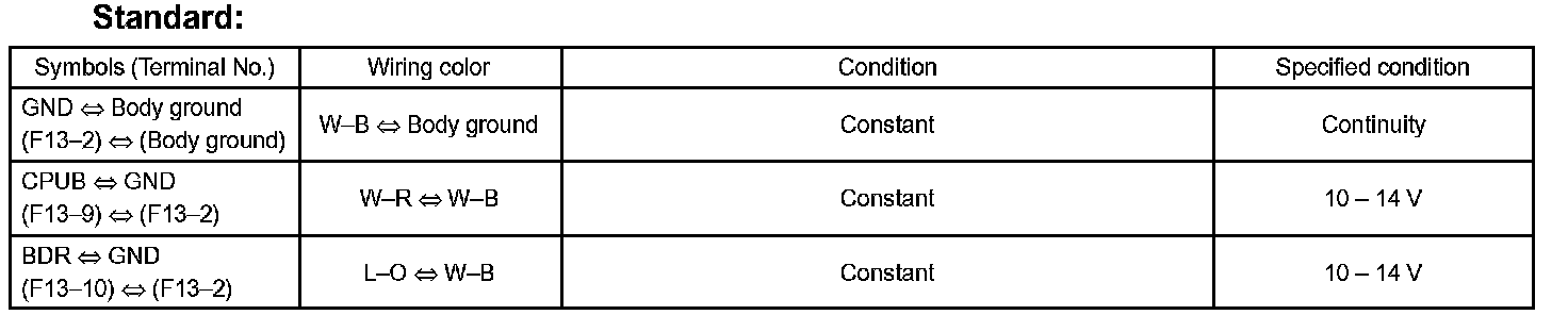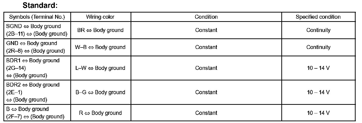 b. Check the voltage and continuity of each terminal of the wire harness side connectors.