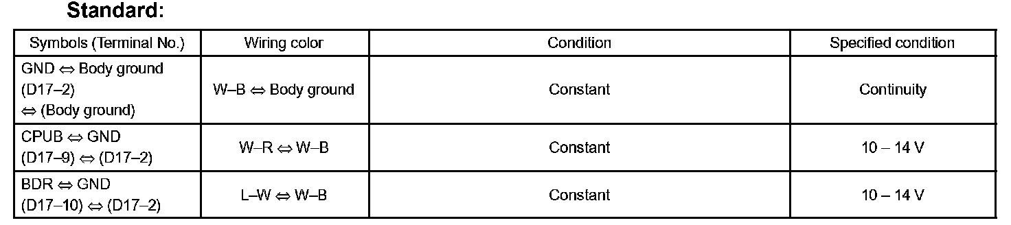 HINT: If the value is not as specified, the vehicle may be defective. In this case, check the wire harness, connector and fuse between the ECU and battery, then repair or replace it if necessary.