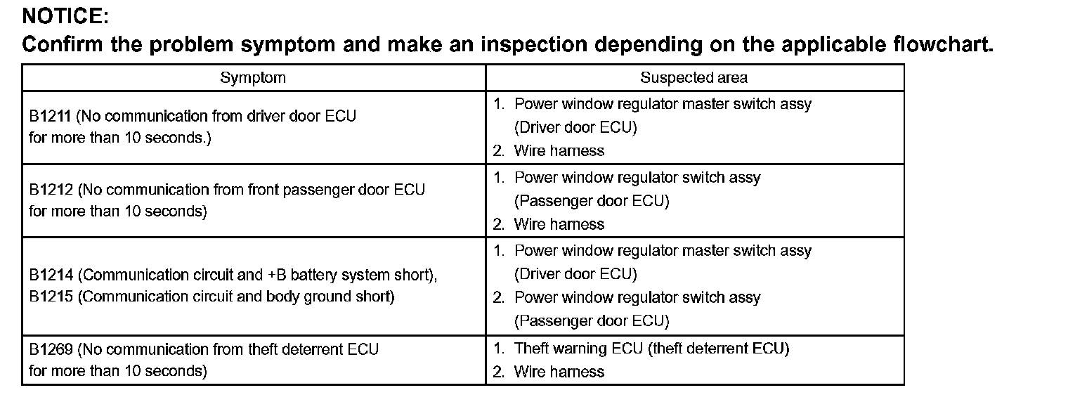 Problem Symptoms Table: