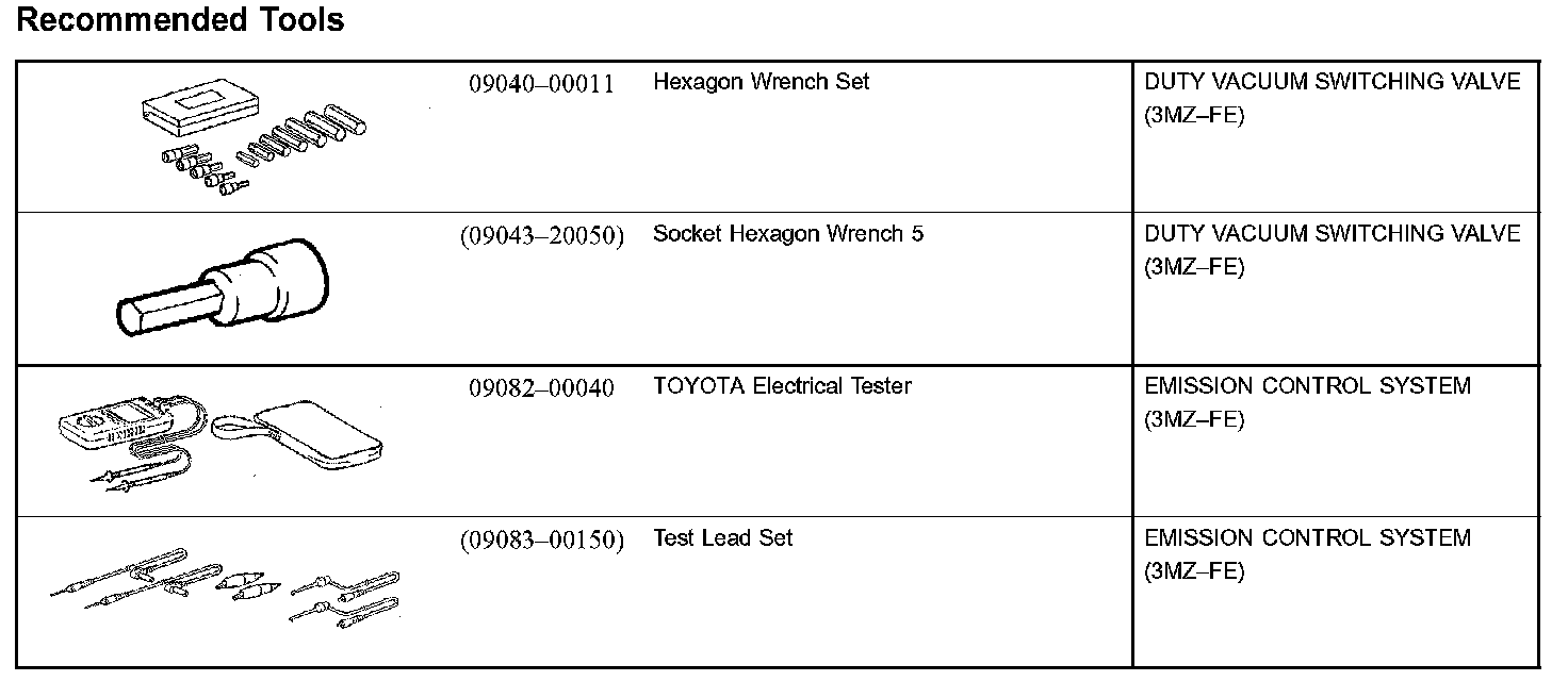 Emission Control - Recommended Tools: