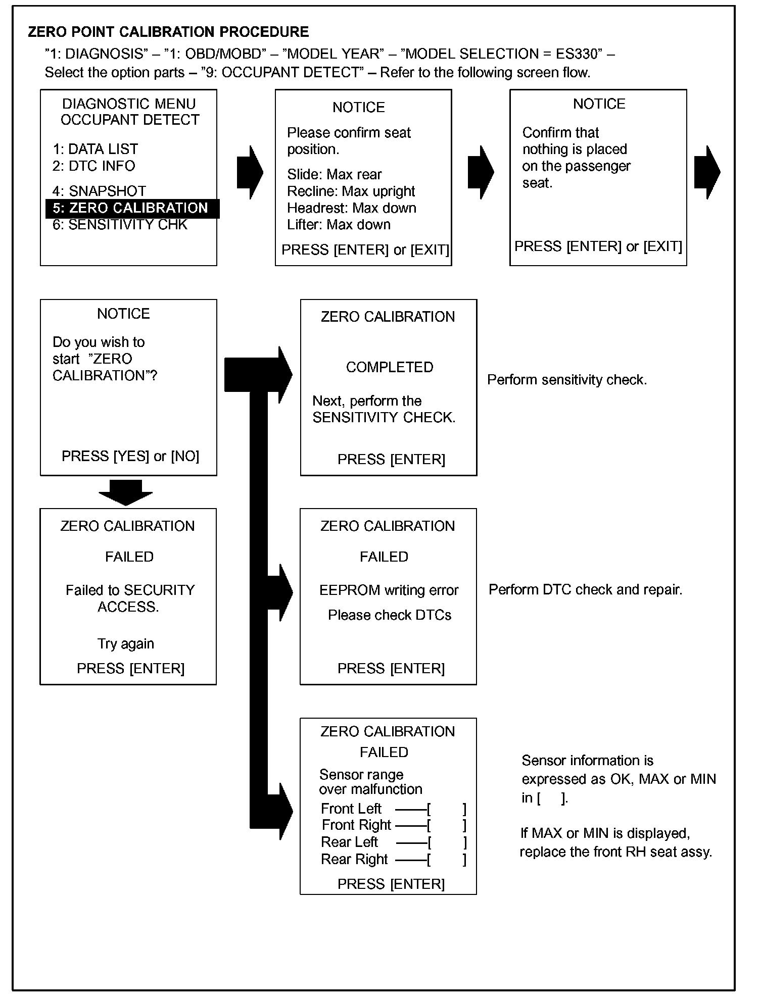 - When zero point calibration has not finished normally, replace the front RH seat assembly.