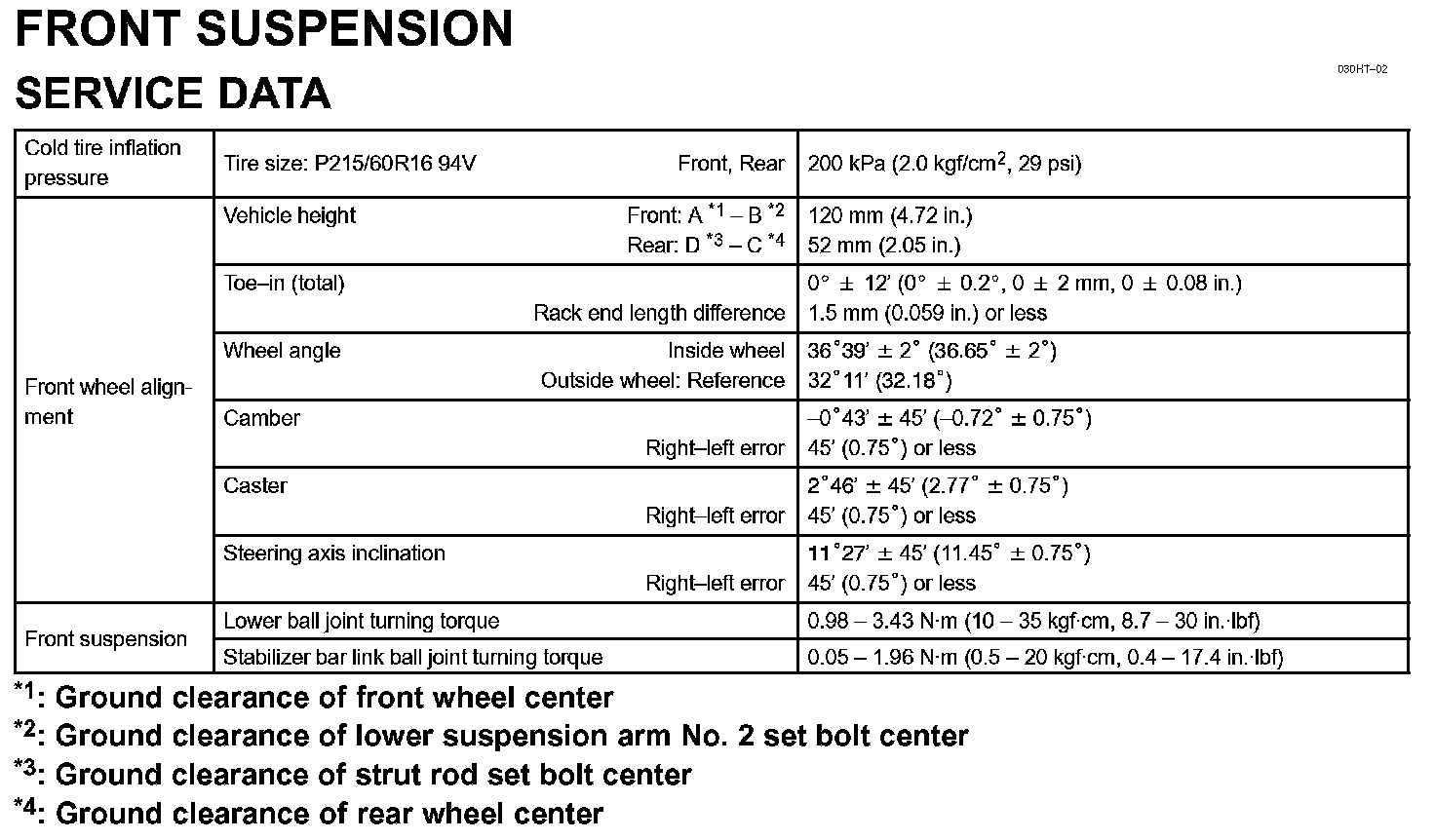 Front Suspension Specifications