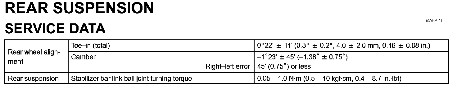 Rear Suspension Specifications