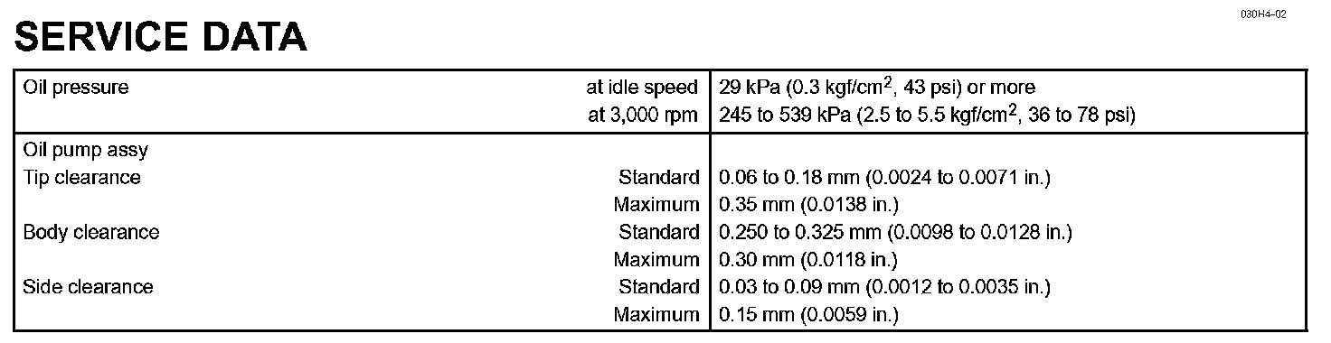 Lubrication - Service Data:
