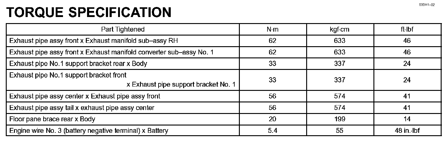 Exhaust - Torque Specification: