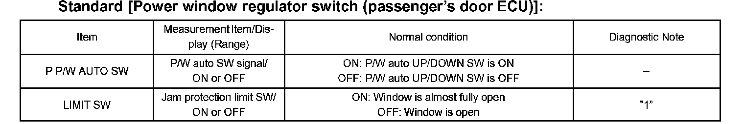 HINT: "1" With the jam protection limit switch ON, the function of the jam protection will stop. If the switch does not come ON at the position where the windows are almost fully open, the windows will not fully close as the jam protection operates at the upper potion during the automatic UP performance.