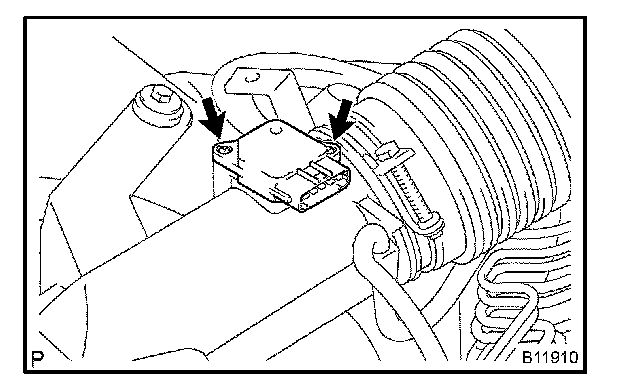 b. Install the MAF meter with the 2 bolts and stay.