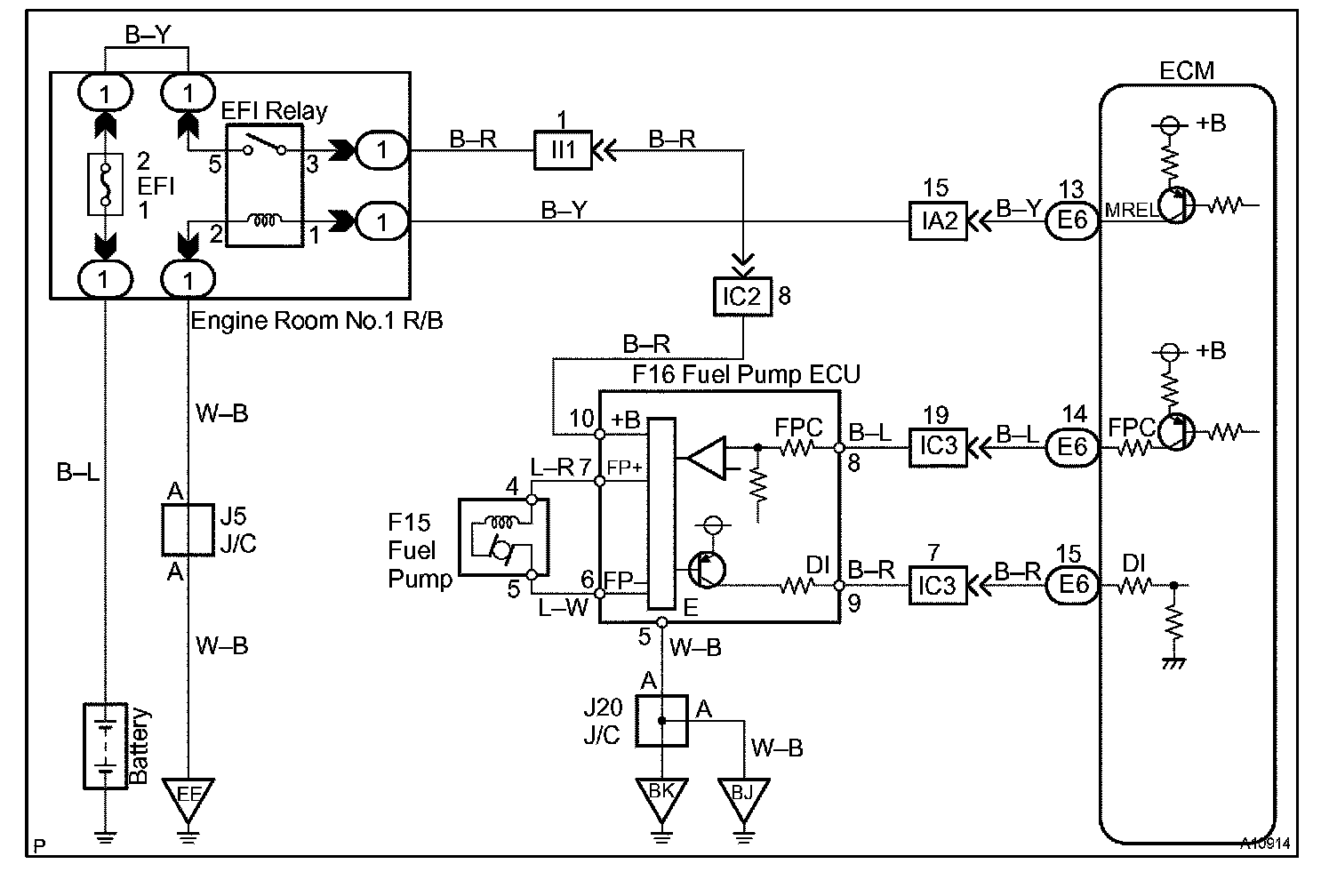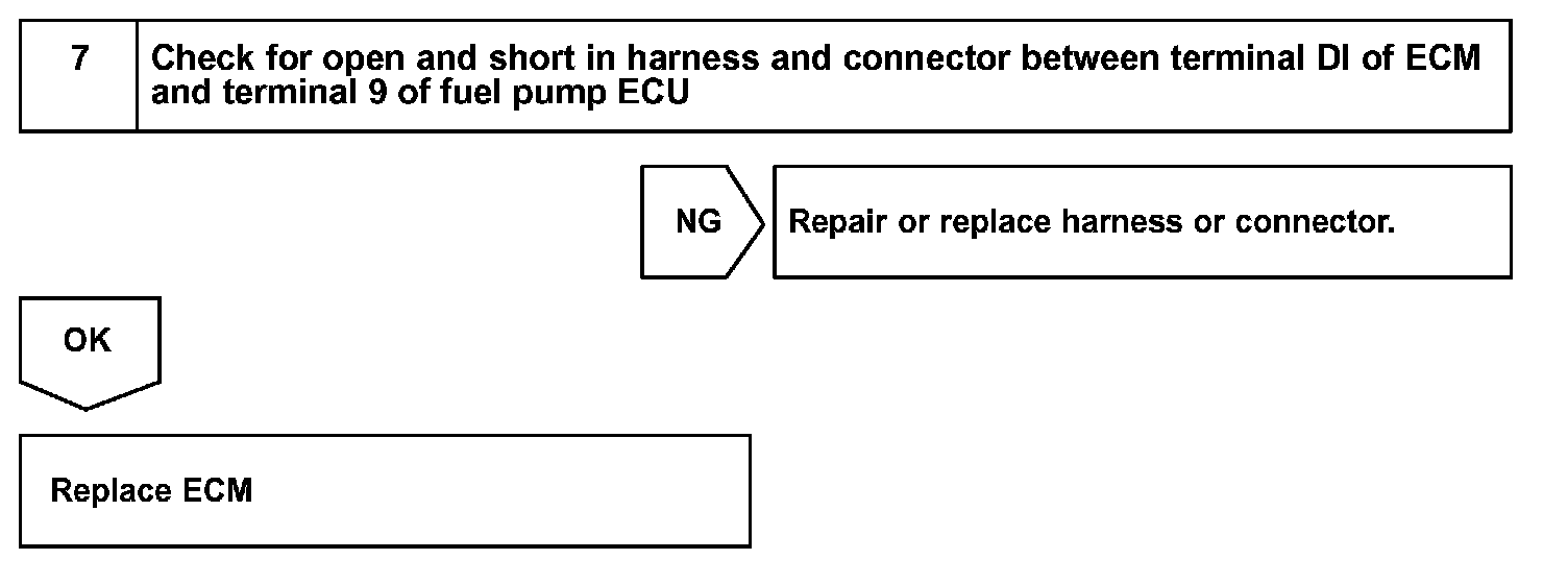When the engine is idling or carries a light load, the ECM sends a Low signal (about 1.3 V) to the fuel pump ECU (FPC terminal).