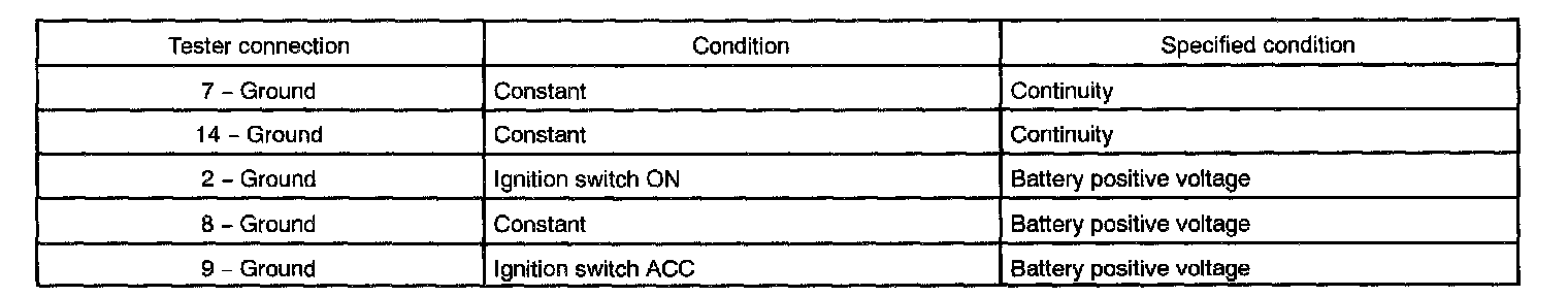 If the circuit is not as specified, inspect the circuits connected to other parts.