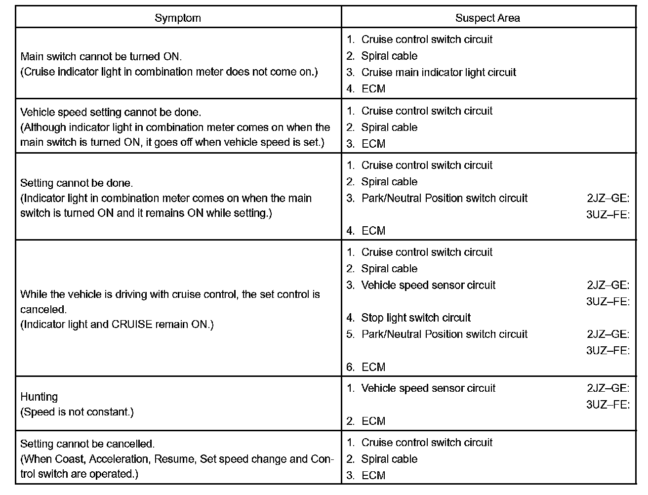 Problem Symptoms Table: