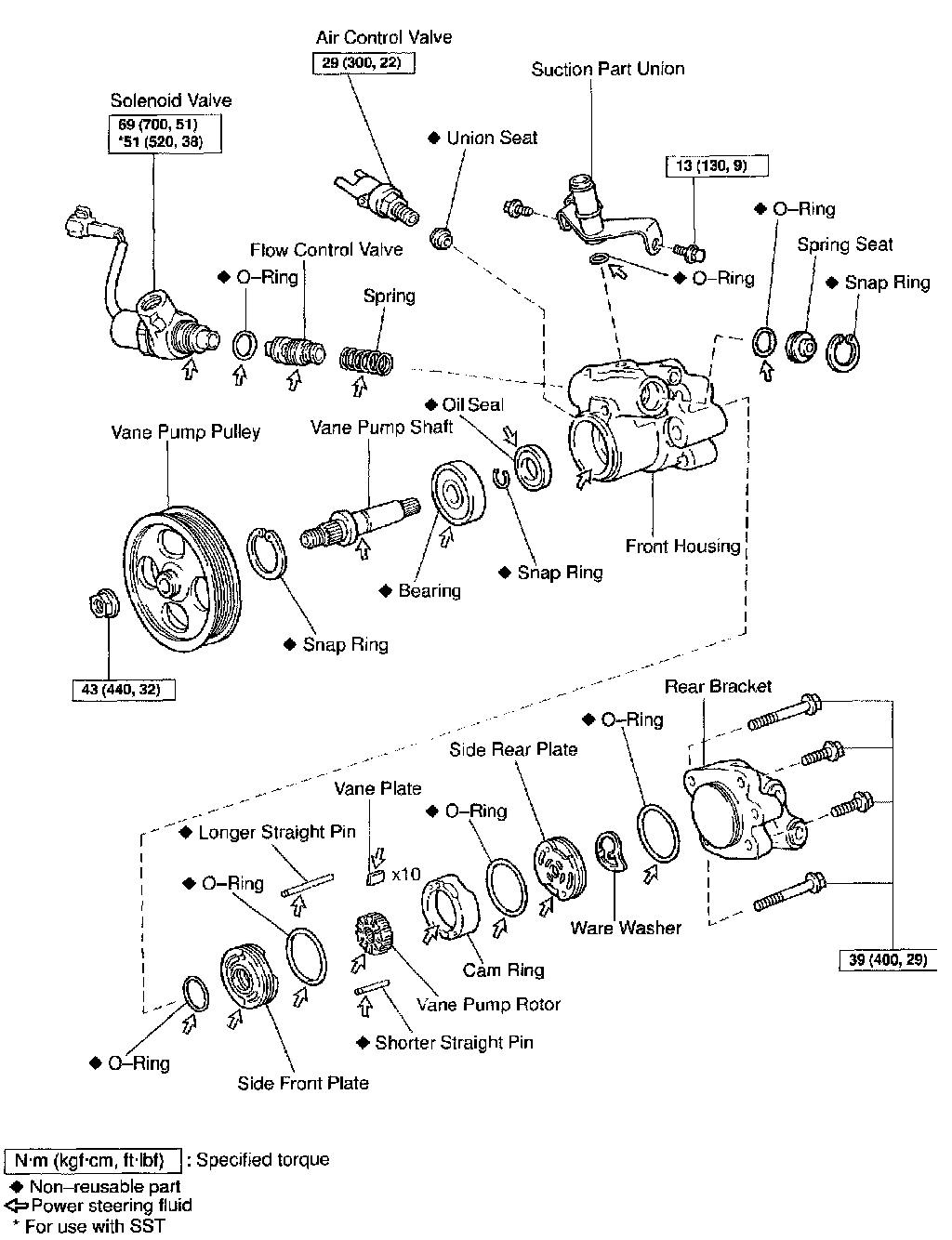 POWER STEERING VANE PUMP REPLACEMENT AND OVERHAUL W/ RELATED COMPONENTS