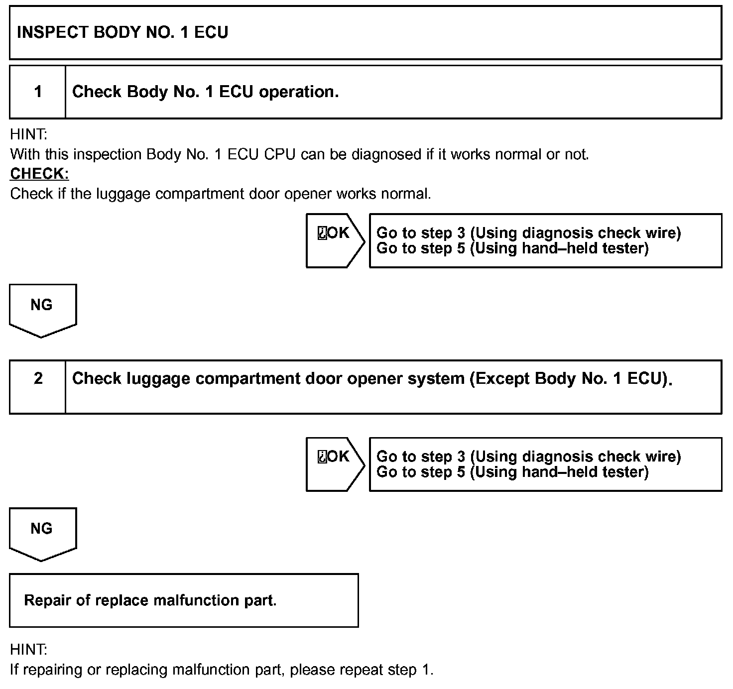 Basic inspection is for checking Body No.1 ECU normal operation.