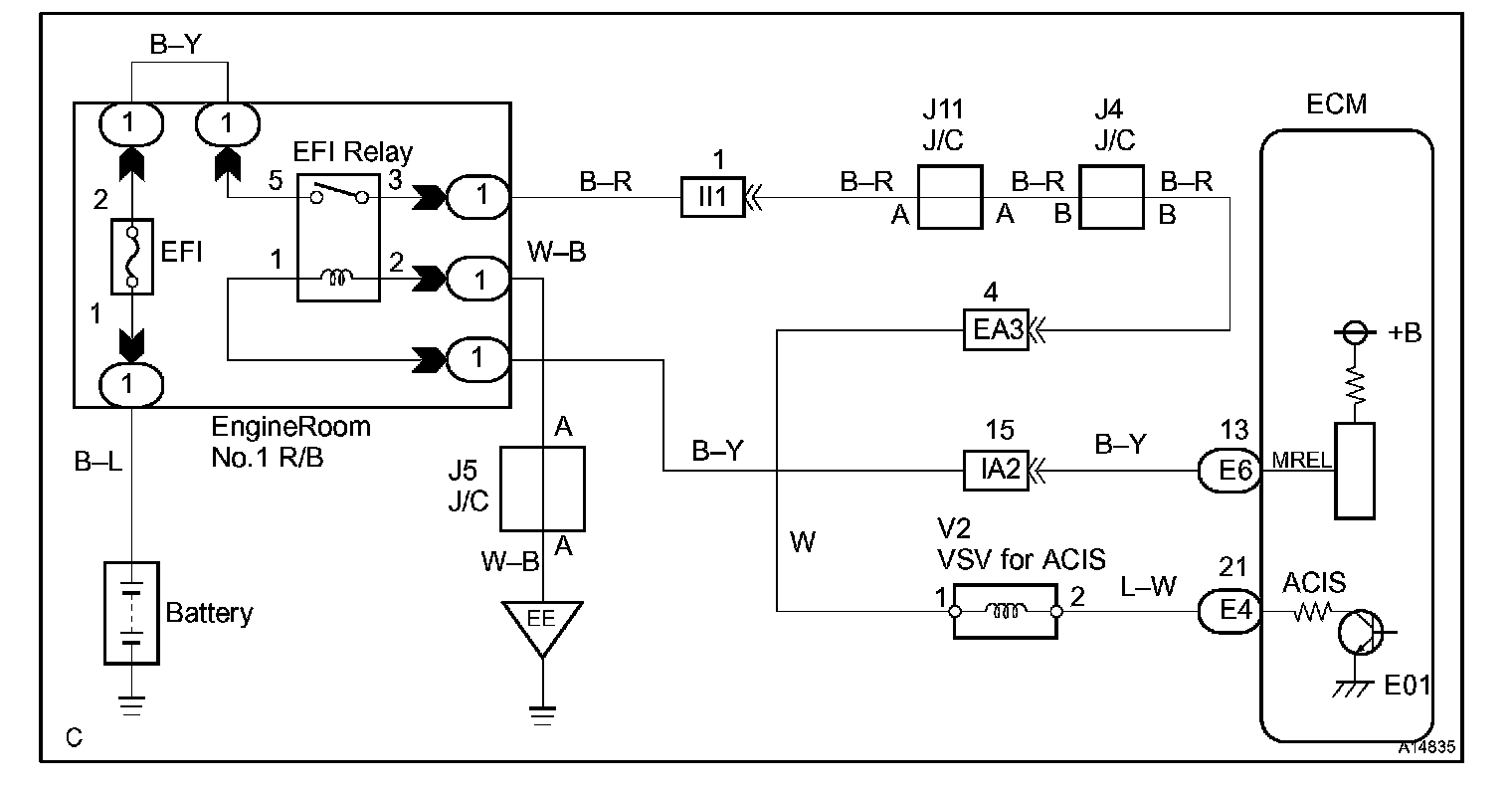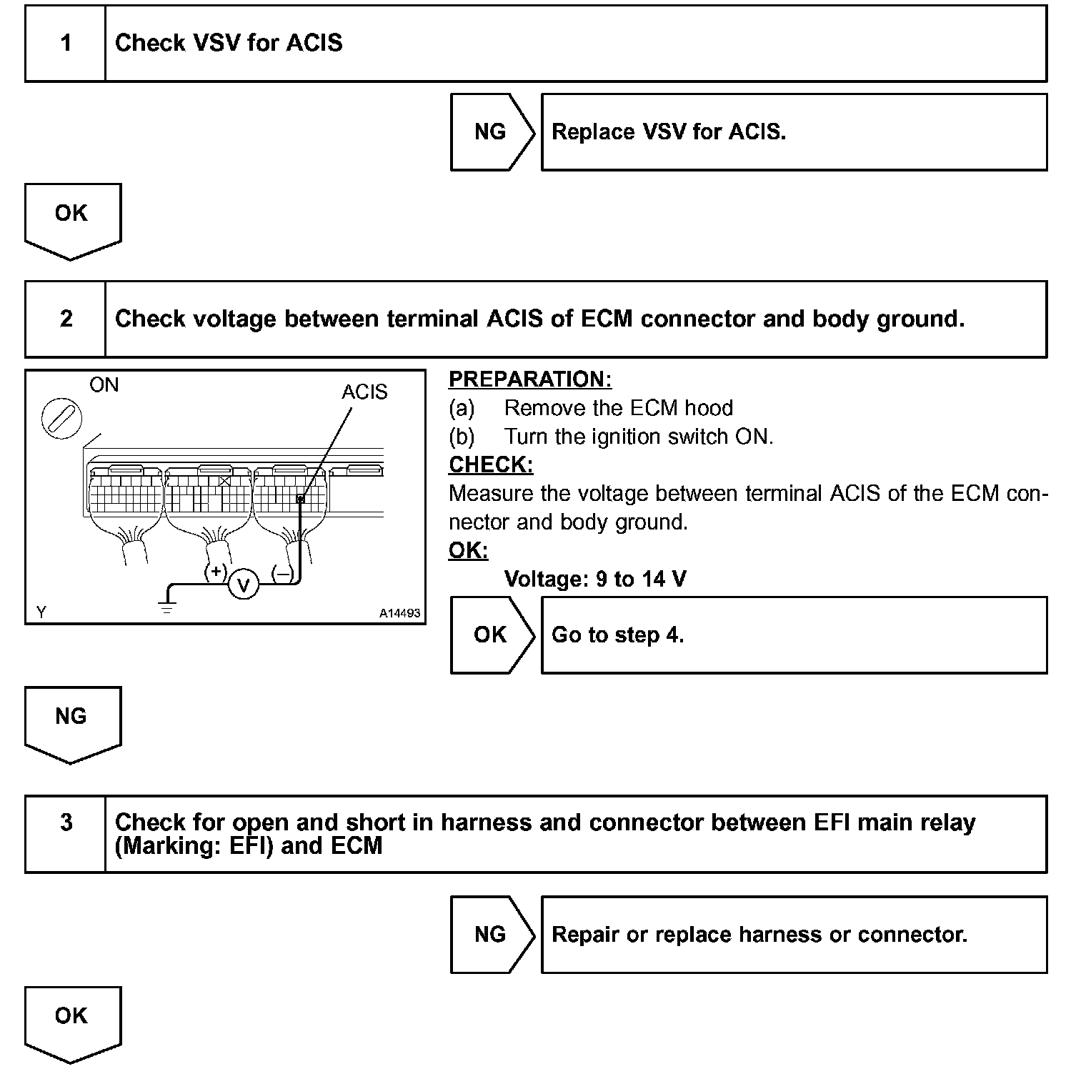 This circuit opens and closes the Intake Air Control Valve (IACV) in response to the engine load in order to increase the intake efficiency (ACIS: Acoustic Control Induction System).