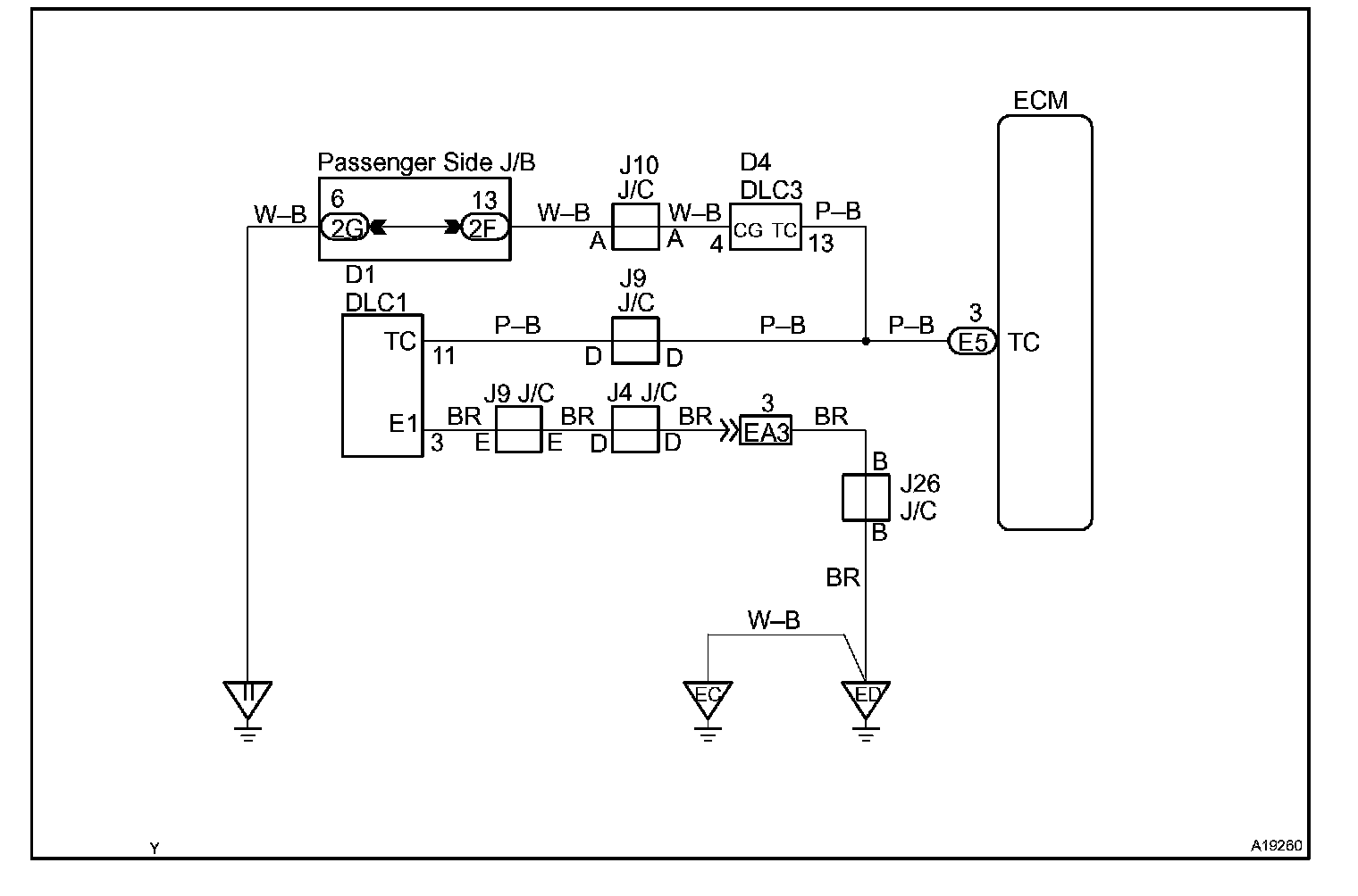 Terminal TC and CG are located in the DLC1. When connecting these terminals, DTCs in normal mode or test mode can be read through the MIL flashing in the combination meter.