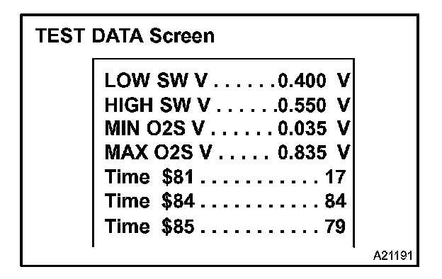 The ECM monitors the O2S in the various items. You can read the monitor result (TEST DATA) of each monitor item using the O2S TEST RESULT. However, the output value of the TEST DATA is the latest "snapshot" value that is taken after monitoring and therefore it is not dynamic.