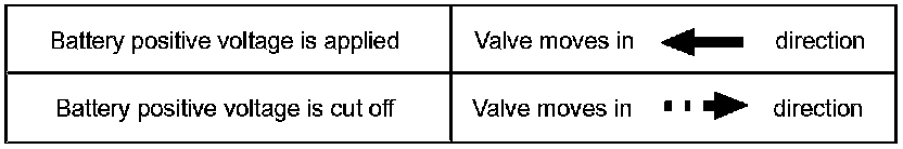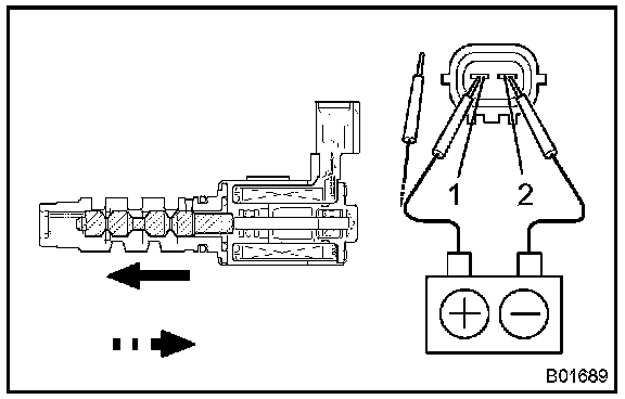 Connect the positive (+) lead from the battery to terminal 1 and negative (-) lead to terminal 2, and check the movement of the valve.