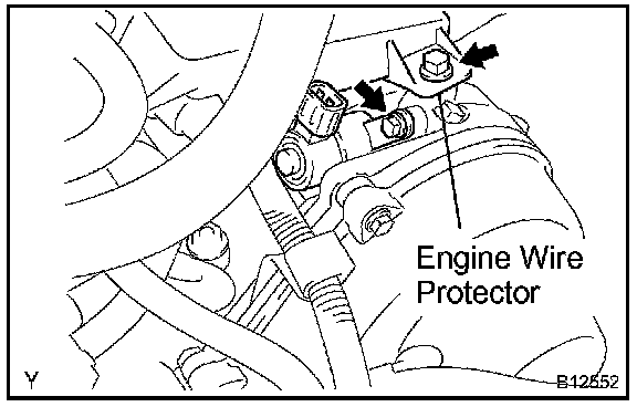a. Remove the bolt, and disconnect the engine wire protector from the camshaft bearing cap.