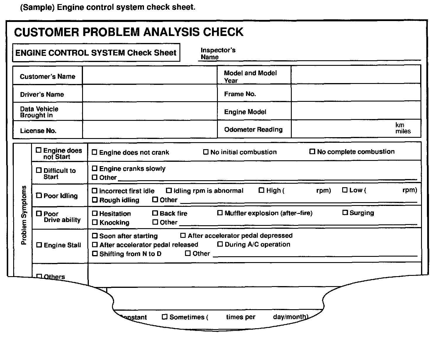 (Sample) Engine control system check sheet