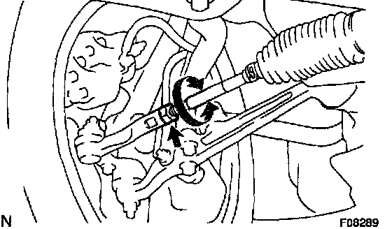 c. Turn the right and left rack ends by an equal amount to adjust the toe-in.