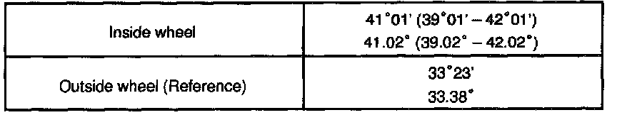 If the right and left inside wheel angles differ from the specified value, inspect the toe-in.