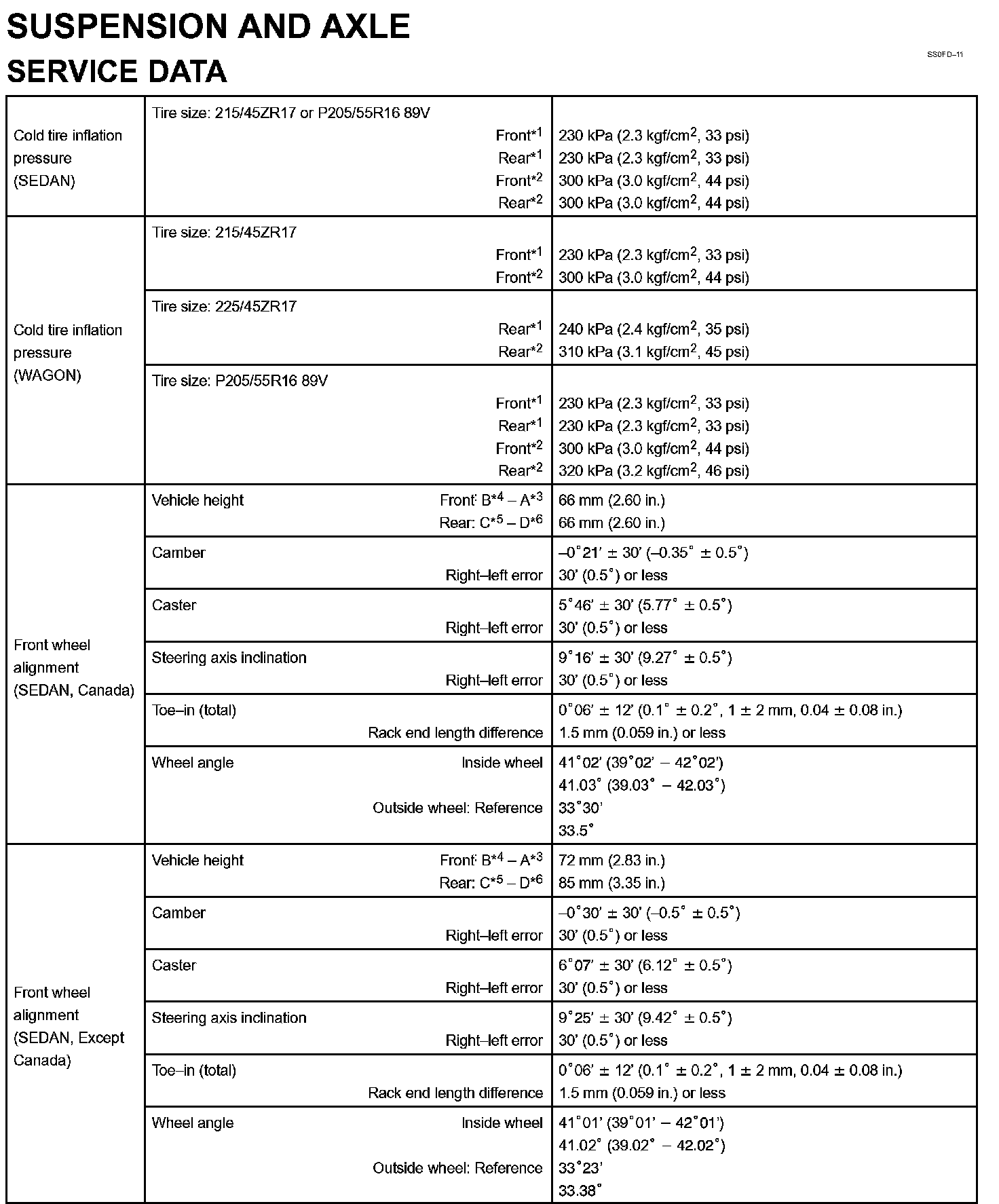 Suspension Specifications