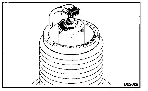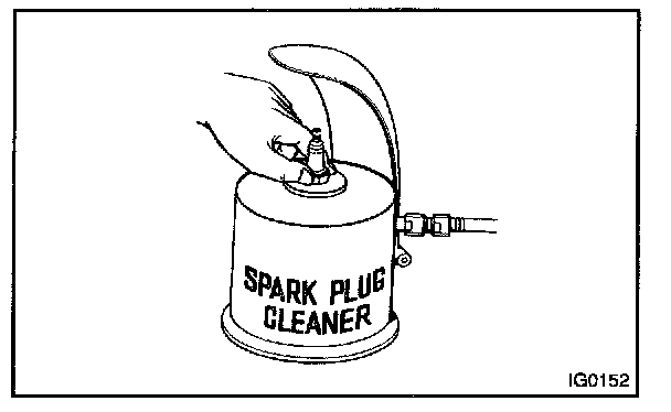 HINT: If there are traces of oil, remove it with gasoline before using the spark plug cleaner.