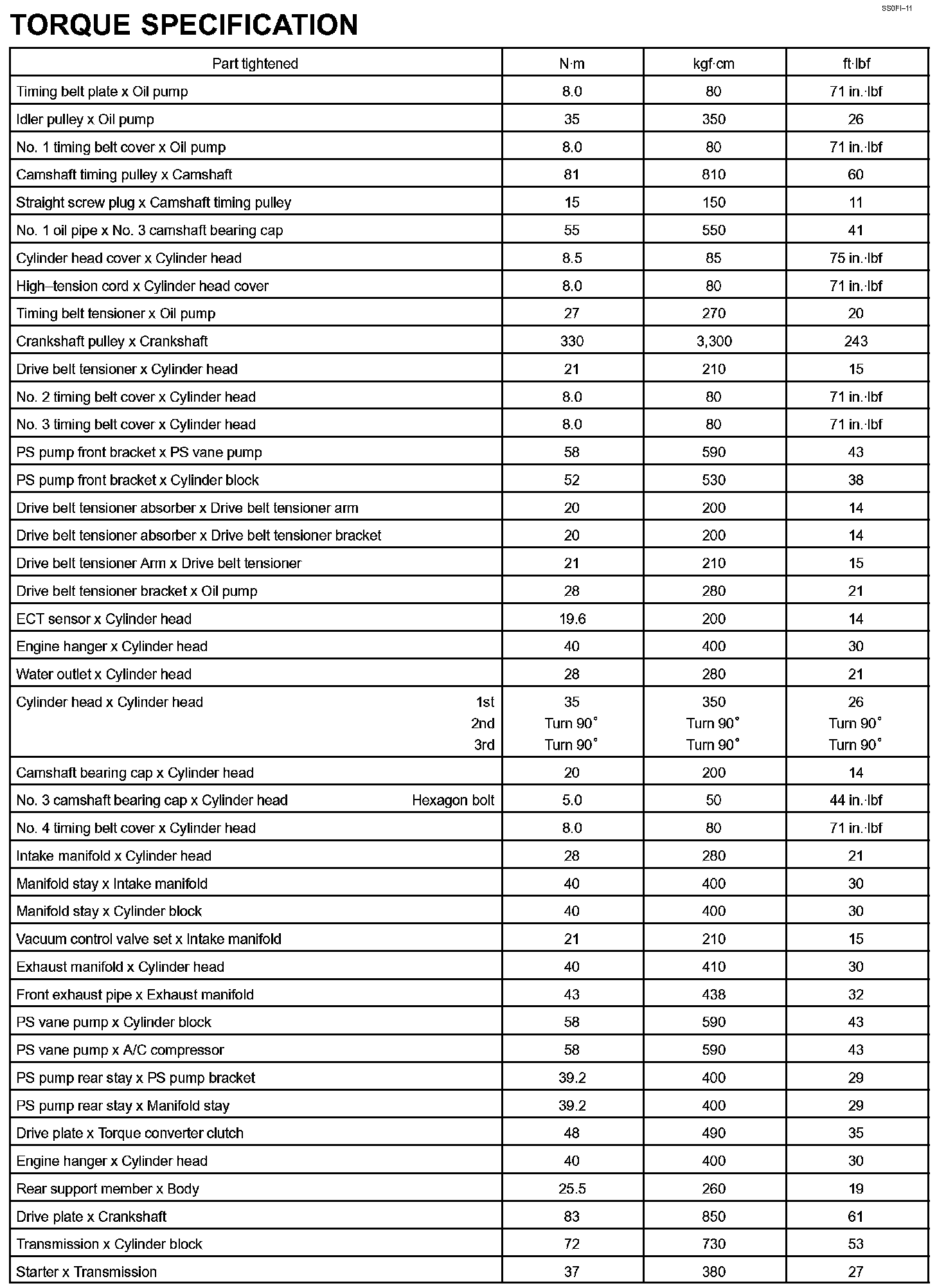 Engine Mechanical - Torque Specification Part 1: