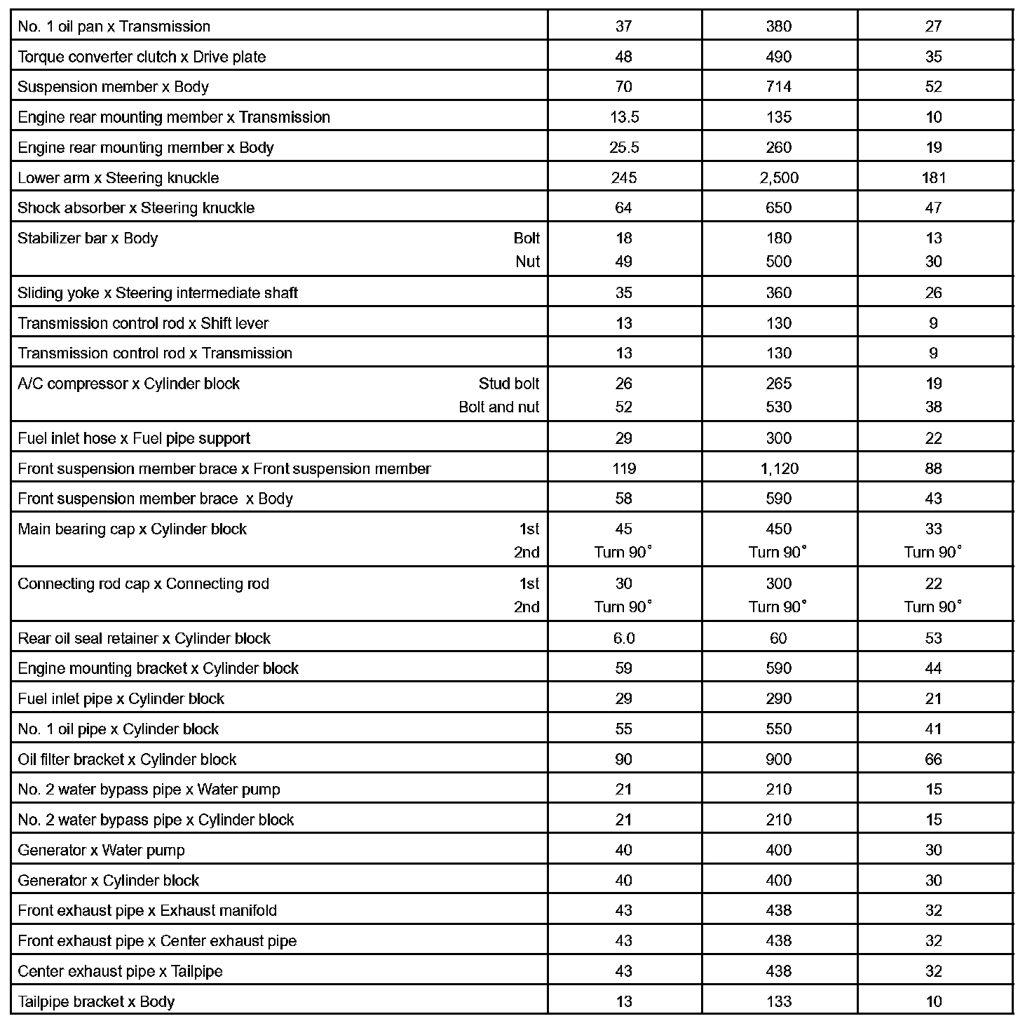 Engine Mechanical - Torque Specification