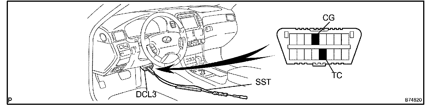 1. Using SST, connect terminals TC and CG of the DLC3.