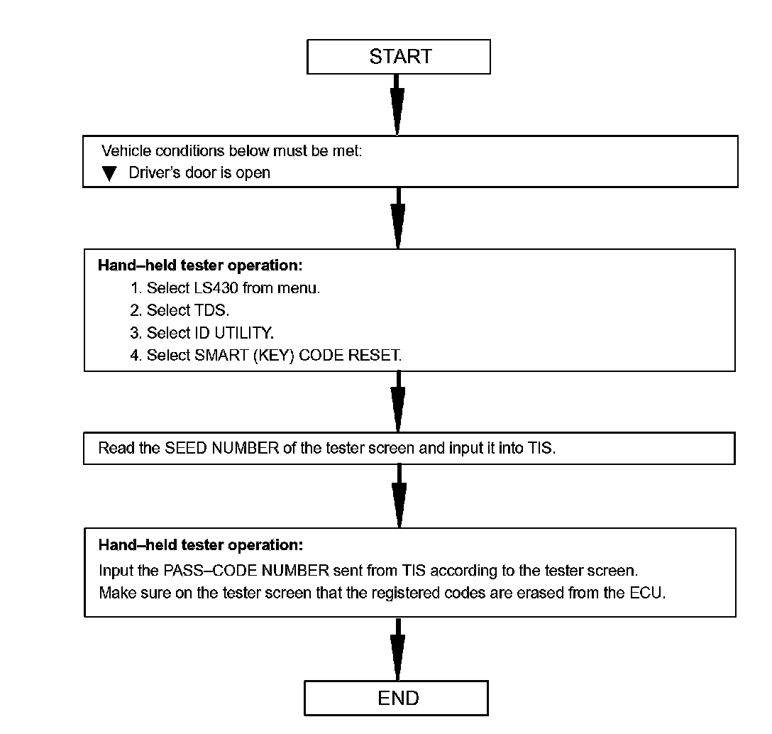 - A brief outline of procedures for key code reset is shown. For more detailed information, please refer to the hand-held tester screen's instructions.