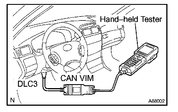 HINT: Connect the cable of the hand-held tester (with CAN VIM) to the DLC3, turn the ignition switch ON and attempt to use the hand-held tester. If the screen displays the message UNABLE TO CONNECT TO VEHICLE, there is a problem either with the vehicle or with the tester.