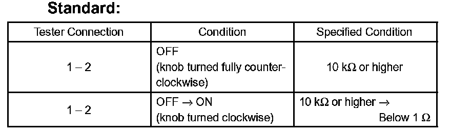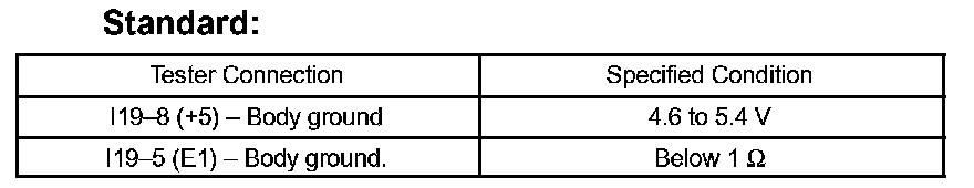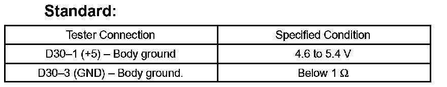 If the result is not as specified, repair or replace the harness and connector.