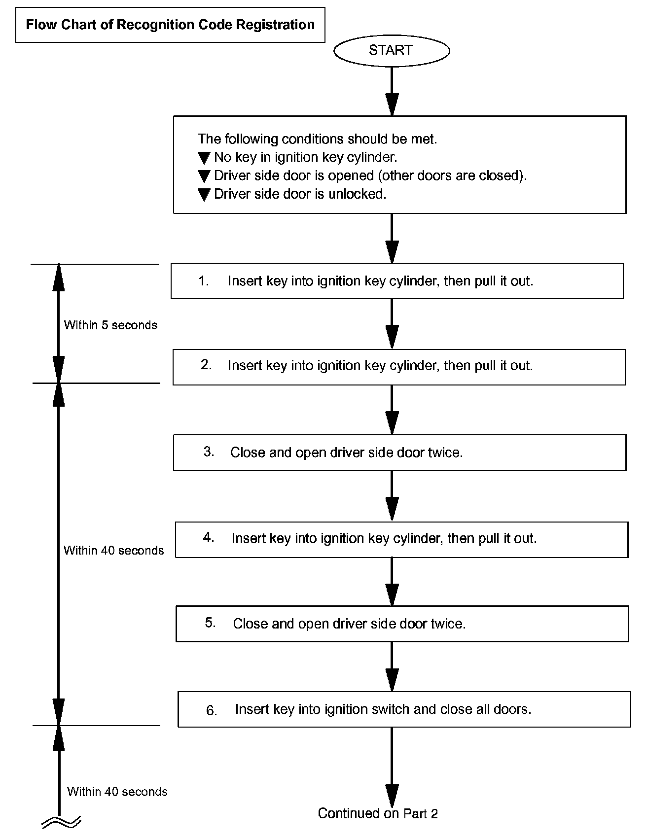 - Recognition code registration is necessary when replacing the door control transmitter or the door control receiver. The key has 2 codes: the key code (immobilizer code) and wireless code. All of these cod types need to be registered. Refer to the key code (immobilizer code) registration procedures. [1][2]Initial Inspection and Diagnostic Overview