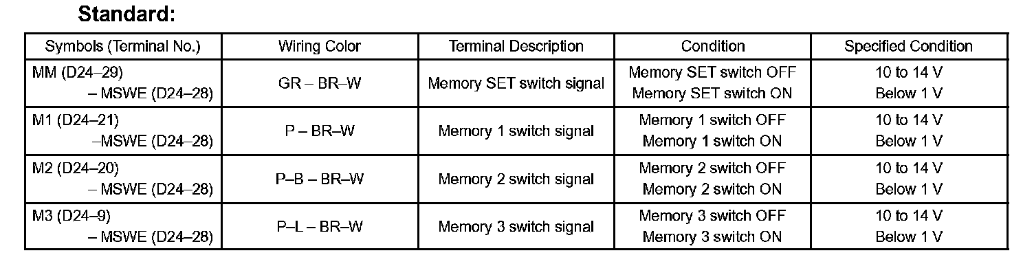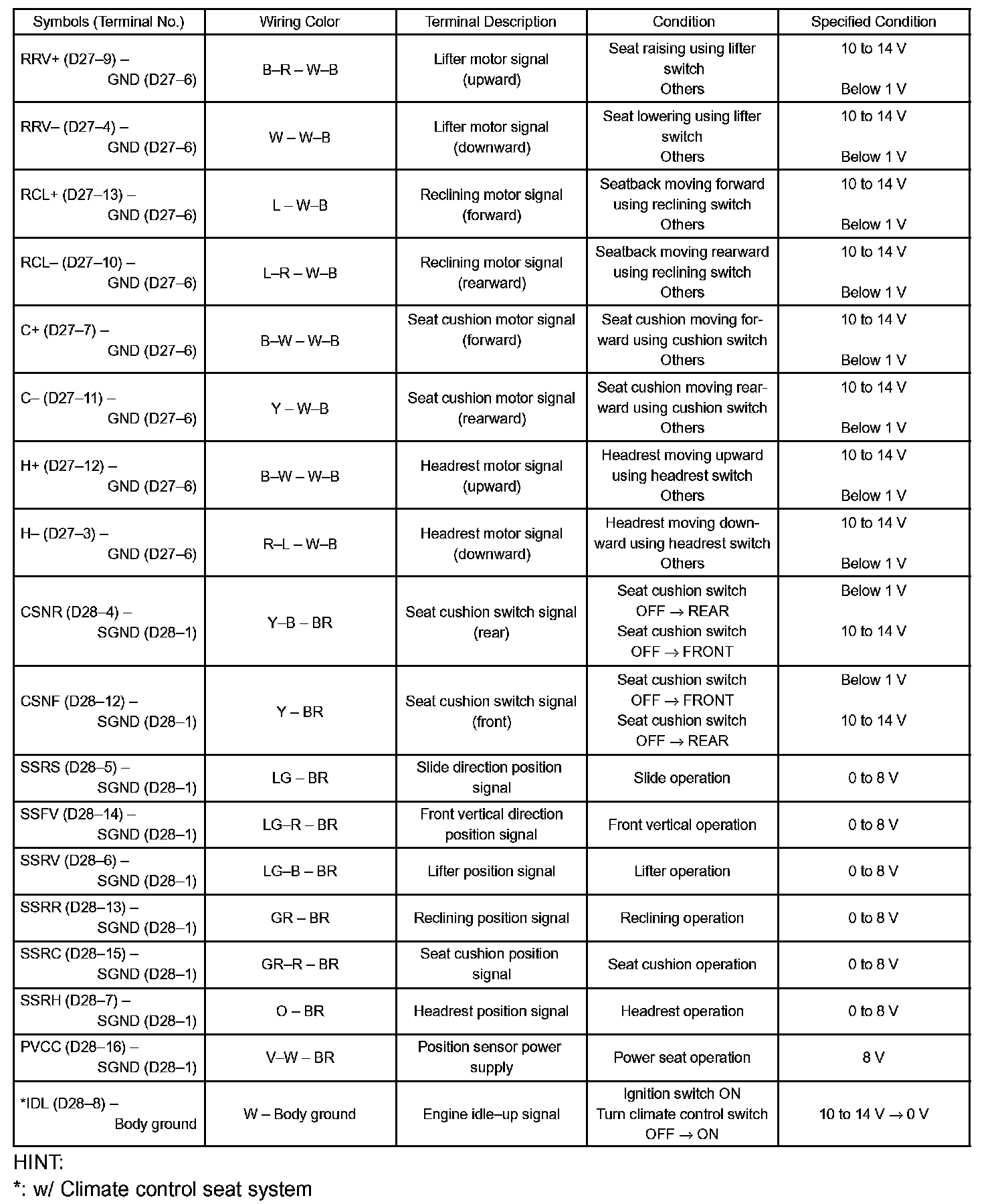 If the result is not as specified, replace the power seat or the ECU may have a malfunction.